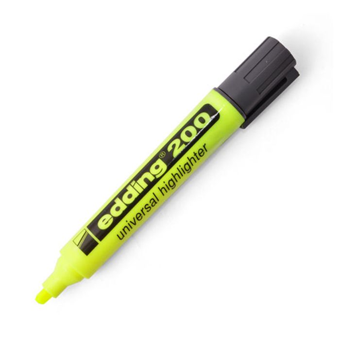 Resaltador universal para textos, libros, correspondencia, etc. Altamente resistente a la luz y el agua, tiene punta biselada y tinta pigmentada de gran brillo. Brinda un trazo grueso (entre 1 y 5 mm) y su cuerpo es plástico redondo.