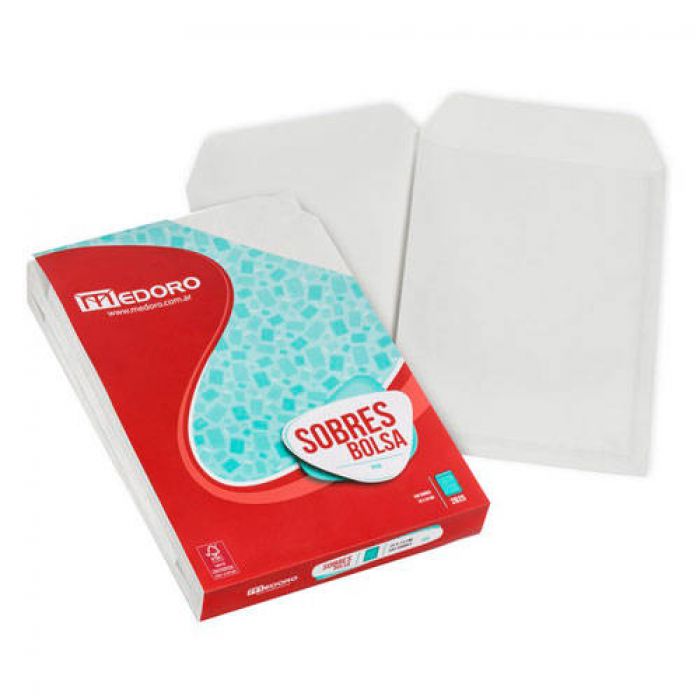 Sobre bolsa Medoro confeccionado en papel obra blanco de 80 gramos sin ventana. Con solapa sin engomar.Material: papel obra blanco. Medidas: 19 x 24 cm.