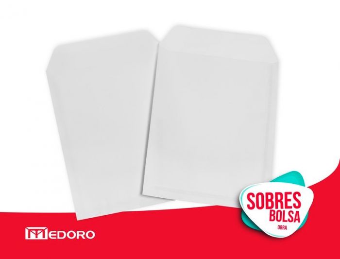 Sobre bolsa Medoro confeccionado en papel obra blanco de 80 gramos sin ventana. Con solapa sin engomar.Material: papel obra blanco. Medidas: 24 x 30 cm.